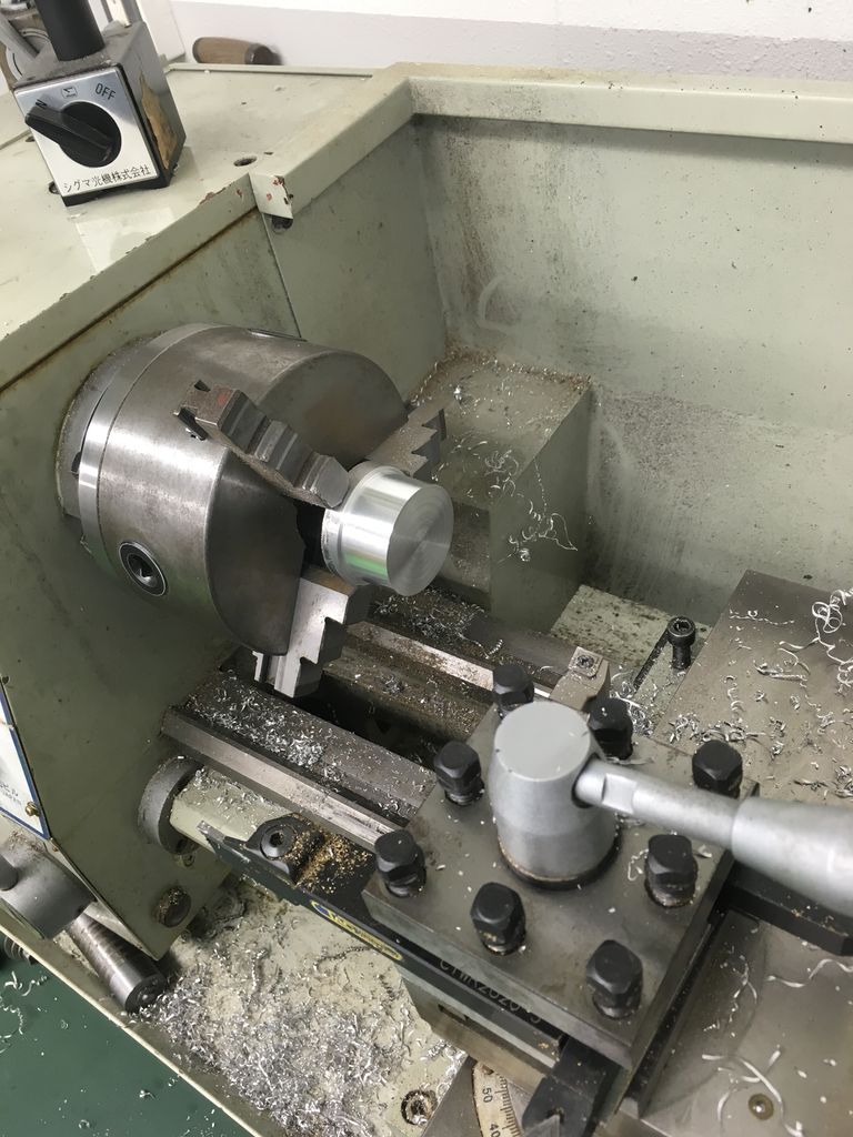 径が思った通りだったので旋盤でアルミを加工します。