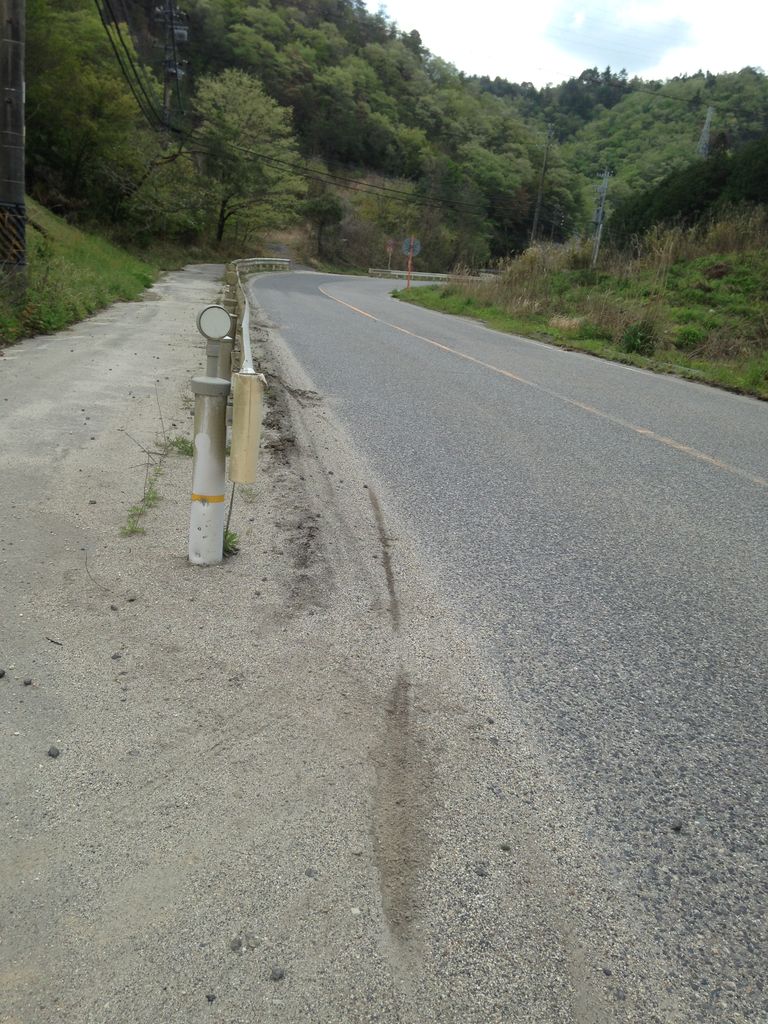 くだりで60キロ、砂利に足を取られ急ブレーキ、吹っ飛びました。